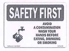 AVOID CONTAMINATION - WASH YOUR HANDS BEFORE EATING, DRINKING OR SMOKING”