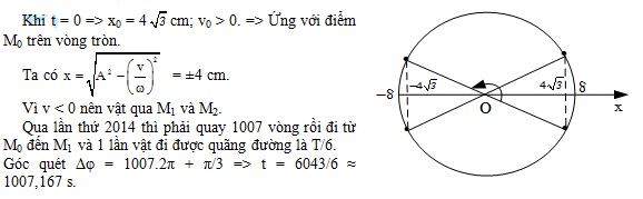 Một vật dao động điều hoà với phương trình x = 8cos(2πt - π/6) (cm). Thời điểm thứ 2015 vật qua vị trí có vận tốc v = - 8π cm/s là thời điểm nào?