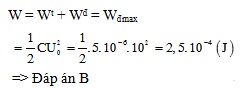 Mạch dao động L, C lí tưởng với cuộn thuần cảm có độ tự cảm L và tụ điện có điện dung C = 5.10-6 F. Hiệu điện thế cực đại giữa hai bản tụ là 10 V. Năng lượng của mạch dao động là