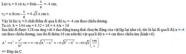 Một chất điểm dao động điều hòa với phương trình: x = 8sin(πt - π/6) (cm). Li độ và vận tốc sau khi đi được 144 cm kể từ lúc t0 = 0 là