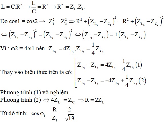 Mạch điện xoay chiều RLC mắc nối tiếp, cuộn dây thuần cảm. Biết L = C.R2. Đặt vào hai đầu đoạn mạch điện áp xoay chiều. Biết mạch có cùng hệ số công suất với hai giá trị của tần số góc