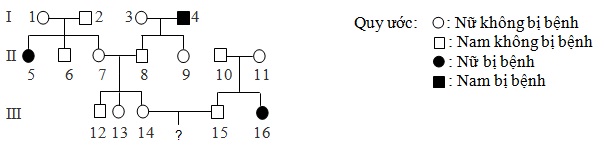 Sơ đồ phả hệ dưới đây mô tả sự di truyền của một bệnh ở người do một trong hai alen của một gen quy định.