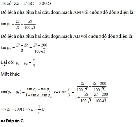 so với điện áp giữa hai đầu đoạn mạch AB. Giá trị của L bằng