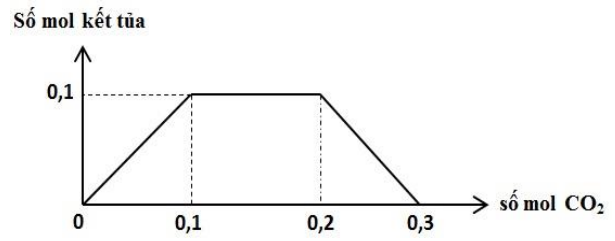 Cho hỗn hợp kim loại gồm x mol Na và y mol Ba vào nước dư được V lít H2 (đktc) và dung dịch X. Khi cho CO2 hấp thụ từ từ đến dư vào dung dịch X, kết quả thí nghiệm được biểu diễn trên đồ thị sau: