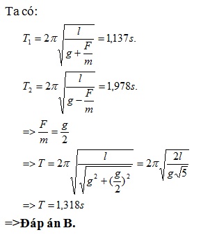 quay trong mặt phẳng thẳng đứng chứa nó một góc 300 so với ban đầu, còn độ lớn không đổi thì chu kỳ dao động điều hòa bằng 1,978s hoặc 1,137s. Giá trị chu kì dao động T của con lắc là