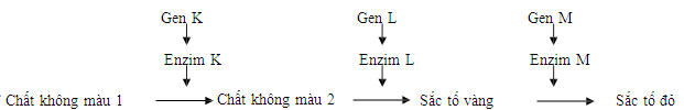 Ở một loài hoa, xét ba cặp gen phân li độc lập, các gen này quy định các enzim khác nhau cùng tham vào một chuỗi phản ứng hóa sinh để tạo nên sắc tố ở cánh hoa theo sơ đồ sau: