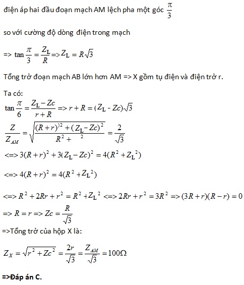so với cường độ dòng điện trong mạch. Tổng trở đoạn mạch AB và AM lần lượt là