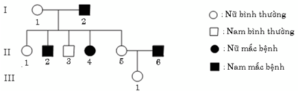 Sơ đồ phả hệ dưới đây mô tả sự di truyền một bệnh ở một dòng họ: