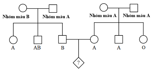 Dưới đây là sơ đồ phả hệ trong một gia đình về tính trạng nhóm máu. Biết nhóm máu do 1 gen