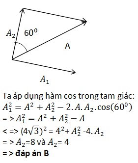 dao động tổng hợp có biên độ A=4 cm. Dao động thành phần thứ hai sớm pha hơn dao động tổng hợp và π/3 . Dao động thành phần thứ hai có biên độ