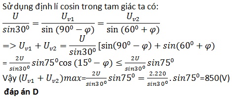 Tổng số chỉ của hai vôn kế lớn nhất bằng: