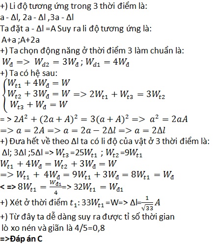 Một con lắc lò xo dao động điều hòa theo phương thẳng đứng,gốc O ở VTCB.Tại các thời điểm lò xo giãn a cm,2a cm,3a cm tương ứng với tốc độ của vật là