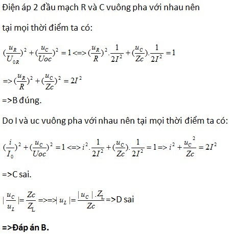 vào hai đầu đoạn mạch gồm điện trở thuần R, cuộn cảm thuần có cảm kháng ZL và tụ điện có dung kháng ZC mắc nối tiếp. Gọi i là cường độ dòng điện tức thời và I là cường độ dòng điện hiệu dụng trong mạch uR; uL và uC lần lượt là điện áp tức thời giữa hai đầu điện trở; giữa hai đầu cuộn cảm thuần và giữa hai đầu tụ điện. Hệ thức đúng là: