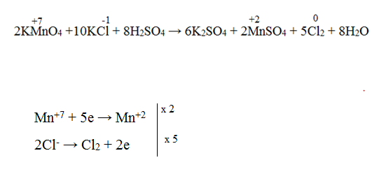 Cho sơ đồ phản ứng: KMnO4 + KCl + H2SO4 → K2SO4 + MnSO4 + Cl2 +
