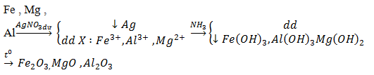 Cho 5,5 gam hỗn hợp bột Fe, Mg, Al vào dung dịch AgNO3 dư thu được m gam chất kết tủa và dung dịch X . Cho NH3 dư vào dung dịch X , lọc kết tủa nhiệt phân không có không khí được 9,1 gam chất rắn Y. Giá trị m là :