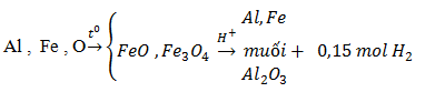 Nung hỗn hợp gồm 0,12 mol Al và 0,04 mol Fe3O4 một thời gian, thu được hỗn hợp rắn X gồm Al , Fe , FeO , Fe3O4 , Al2O3 . Hòa tan hoàn toàn X trong dung dịch HCl dư thu được 0,15 mol khí H2 và m gam muối. Giá trị của m là