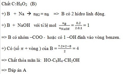 Chất hữu cơ B có công thức phân tử C7H8O2. Tìm công thức cấu tạo của B biết: