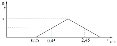Nhỏ từ từ đến dư KOH vào dung dịch hỗn hợp gồm a mol HCl và x mol ZnSO4 ta quan sát hiện tượng theo đồ thị hình bên (số liệu tính theo đơn vị mol). Giá trị của x (mol) là: