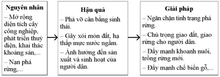 Vẽ sơ đồ thể hiện nguyên nhân, hậu quả của việc suy giảm rừng và giải pháp để bảo vệ rừng ở vùng Nam Trung Bộ.