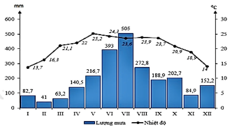 Cho bảng số liệu: NHIỆT ĐỘ VÀ LƯỢNG MƯA TRUNG BÌNH CÁC THÁNG CỦA LAI