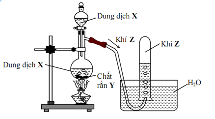 Cho hình vẽ mô tả thí nghiệm điều chế khí Z từ dung dịch X và chất rắn Y: