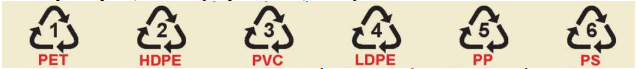 Hình dưới đây là ký hiệu của 6 polymer nhiệt dẻo phổ biến có thể tái chế: