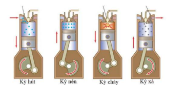 Kỳ thứ tư (kỳ xả): van xả mở và đẩy hỗn hợp khí và nhiên liệu Diesel đã cháy ra ngoài.