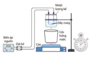 Một nhóm học sinh thực hiện thí nghiệm xác định nhiệt nóng chảy riêng của nước đá. Các bạn bố trí thí nghiệm như hình bên và tiến hành thí nghiệm qua các bước sau:
