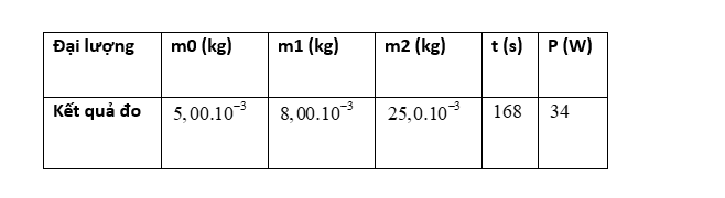 Một nhóm học sinh thực hiện thí nghiệm xác định nhiệt nóng chảy