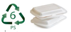 Trên hộp xốp cách nhiệt, hộp đựng thức ăn mang về, cốc, chén đĩa dùng một lần... thường được in kí hiệu như hình bên. Ở nhiệt độ khoảng trên 800C, loại vật liệu này trở nên mềm, dính. Do vậy, tránh hâm nóng thực phẩm chứa trong các loại hộp này.