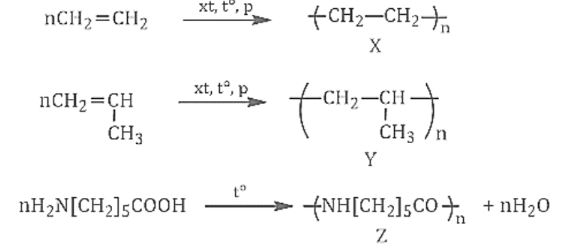 | d) Các phản ứng tổng hợp ra polymer X, Y, Z ở trên đều là phản ứng trùng hợp. |