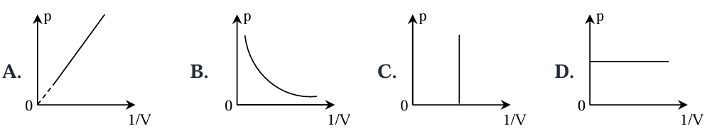 Gọi p và V lần lượt là áp suất và thể tích của một lượng khí lí tưởng. Đồ thị nào sau đây biểu diễn đúng định luật Boyle về quá trình đẳng nhiệt?