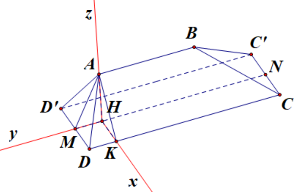 Gọi H là hình chiếu của A xuống MN. Gọi K là hình chiếu của A xuống DC.