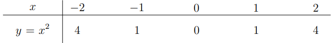 2) Lập bảng giá trị, biểu diễn các điểm trên hệ trục tọa độ $Oxy$ rồi vẽ đường cong Parabol đi qua các điểm đó.