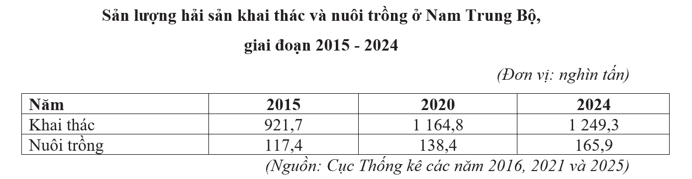 Căn cứ vào bảng số liệu trên, hãy cho biết tỉ trọng sản lượng thủy sản khai thác ở Nam Trung Bộ năm 2024 là bao nhiêu %? (làm tròn kết quả đến một chữ số thập phân).