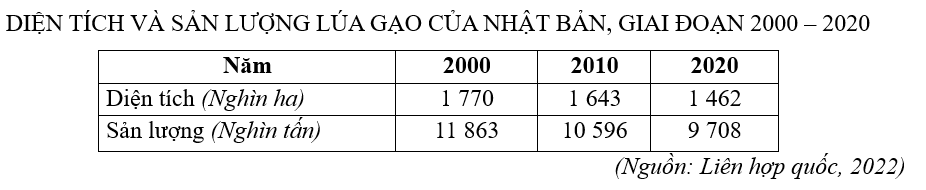 Cho bảng số liệu:Dựa vào bảng số liệu trên, hãy lựa chọn nhận xét