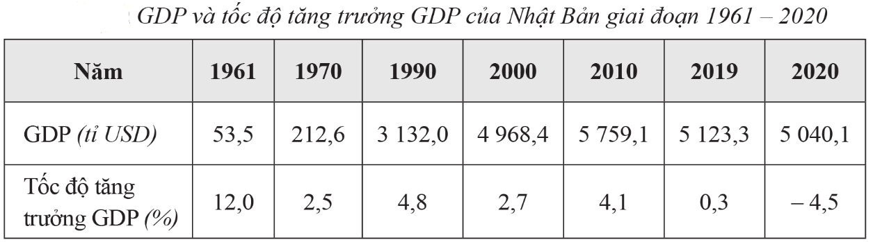 Dựa vào bảng số liệu kết hợp với nội dung tình hình phát triển kinh tế Nhật Bản.