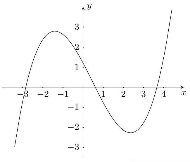 Hình vẽ bên là đồ thị hàm số $y = f'(x)$ và $f'(x)$ là đa thức bậc ba. Số điểm cực trị