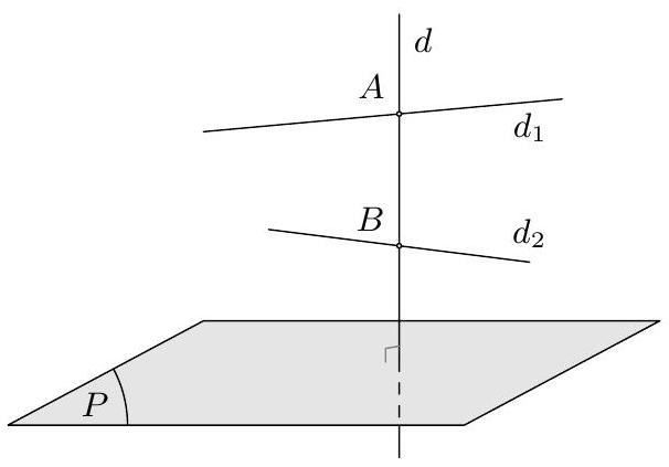 Tìm toạ độ $A,B$ với $A,B$ theo thứ tự là giao điểm của $d$ với $d_{1}$ và $d_{2}$ từ đó viết phương trình d