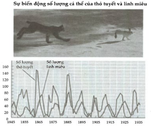 - Số lượng thỏ tuyết (con mồi) tăng → linh miêu (thú ăn thịt) tăng theo.