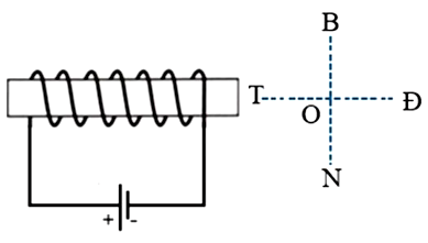 Trong sơ đồ như hình vẽ bên, nếu đặt một kim châm thử tại điểm O thì cực Nam của kim nam châm chỉ về phía