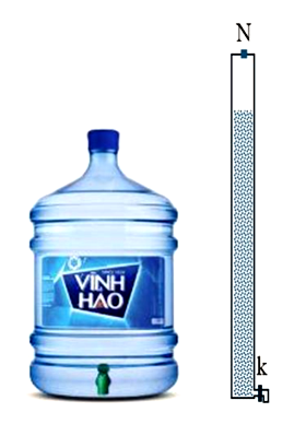 Khi lấy nước từ một bình đang nút kín, ta chỉ lấy được một ít dù trong bình vẫn còn nhiều nước. Từ hiện tượng đó, một học sinh đã nảy ra ý tưởng thực hiện thí nghiệm xác định áp suất khí quyển bằng các dụng cụ đơn giản sau: Một ống thủy tinh hình trụ trong suốt có nút kín ở trên (N) và vòi nhỏ có khóa (k) ở đáy, thước đo chiều dài. Học sinh này tiến hành thí nghiệm theo các bước sau: