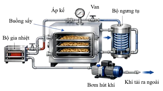 Phương pháp sấy thăng hoa: Thực hiện trong điều kiện áp suất rất thấp, khiến nước đá chuyển trực tiếp sang dạng hơi ở nhiệt độ âm ($- 20^{0}C$ đến $- 5^{0}C$) mà không qua thể lỏng.