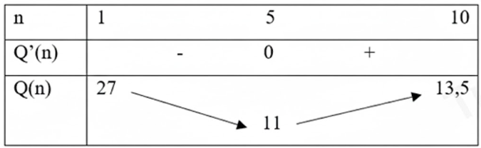 Một đại lý nhập khẩu trái cây tươi để phân phối cho các cửa hàng. Mỗi lần nhập khẩu trái cây, khoán chi phí vận chuyển (không đổi) là 25 triệu đồng. Chi phí bảo quản mỗi tạ trái cây dự trữ trong kho là 80 nghìn đồng/ngày. Thời gian bảo quản trái cây trong kho tối đa 10 ngày. Biết rằng, kể từ ngày đầu tiên nhập hàng, đại lý sẽ phân phối tới các cửa hàng 25 tạ trái cây mỗi ngày. Mỗi lần nhập hàng, đại lý phải nhập đủ trái cây cho bao nhiêu ngày phân phối để chi phí trung bình cho mỗi ngày là thấp nhất (bao gồm chi phí vận chuyển và chi phí bảo quản trong kho)?