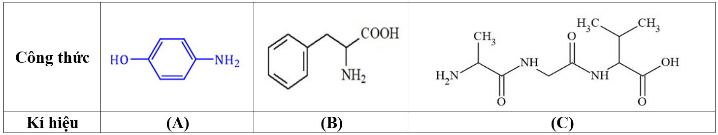 | d) Chất (A), (B) đều là các hợp chất hữu cơ tạp chức, chất (C) thuộc loại tripeptide. |