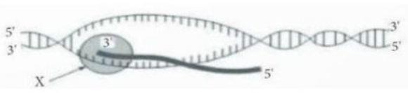 Hình vẽ dưới đây mô tả một cơ chế di truyền cấp độ phân tử đang diễn ra. Cấu trúc X trên hình vẽ là