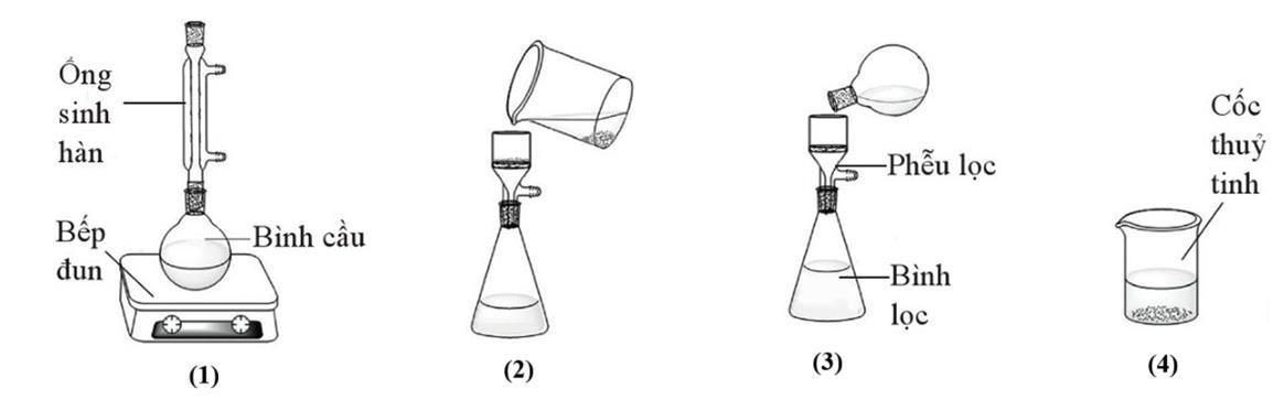 Liệt kê các hình (theo số) tương ứng với thứ tự các bước khi tinh chế chất X bằng phương pháp kết tinh.