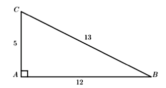 Cho tam giác $ABC$ vuông tại $A$, có $AB = 12,\,\, AC = 5,\,\, BC = 13$ (tham khảo hình vẽ). Khẳng định nào dưới đây đúng?