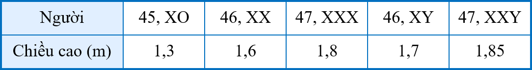 Khi nghiên cứu về tính trạng chiều cao ở người, người ta có bảng thông tin sau đây: