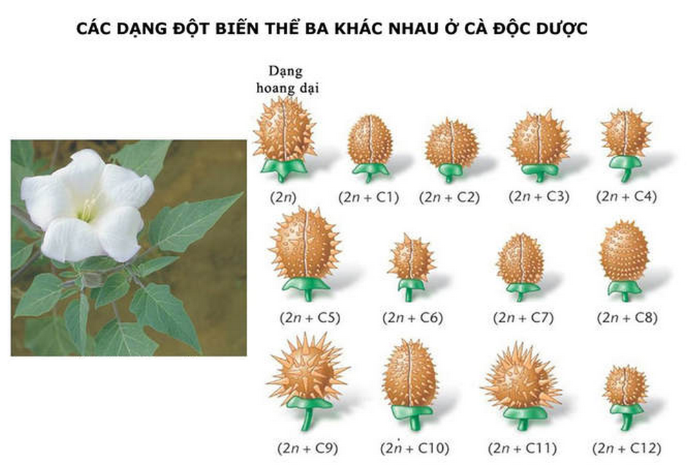 Quan sát và phân tích hình ảnh các dạng đột biến thể ba ở cà độc dược.Cho các nhận định